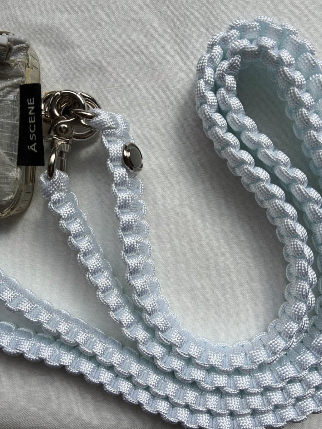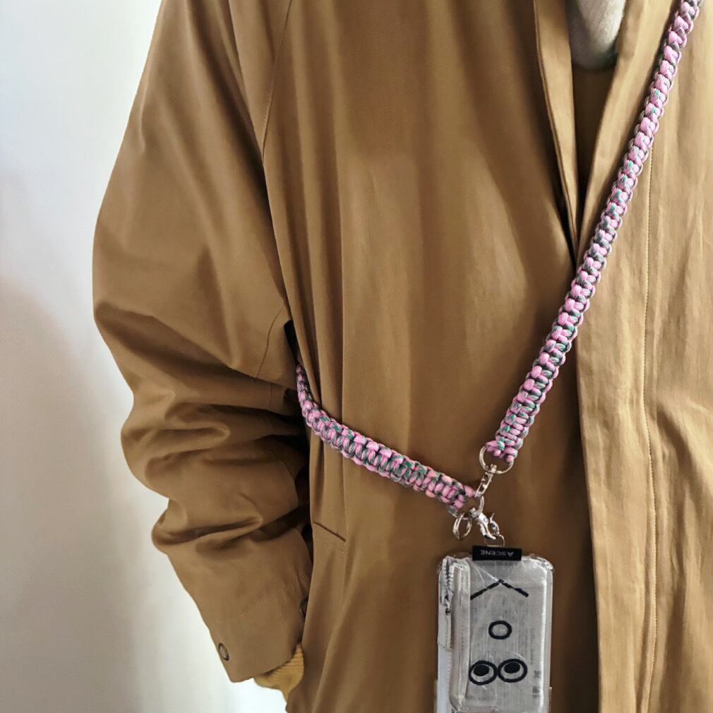 Onawa(おなわ)は、パラシュートコードを一本一本手仕事で編み込んだロングタイプのストラップです。縄のような見た目がキュートなのは、もちろんですが、「おしゃれ泥棒をお縄にかける」という意味もこめられています。